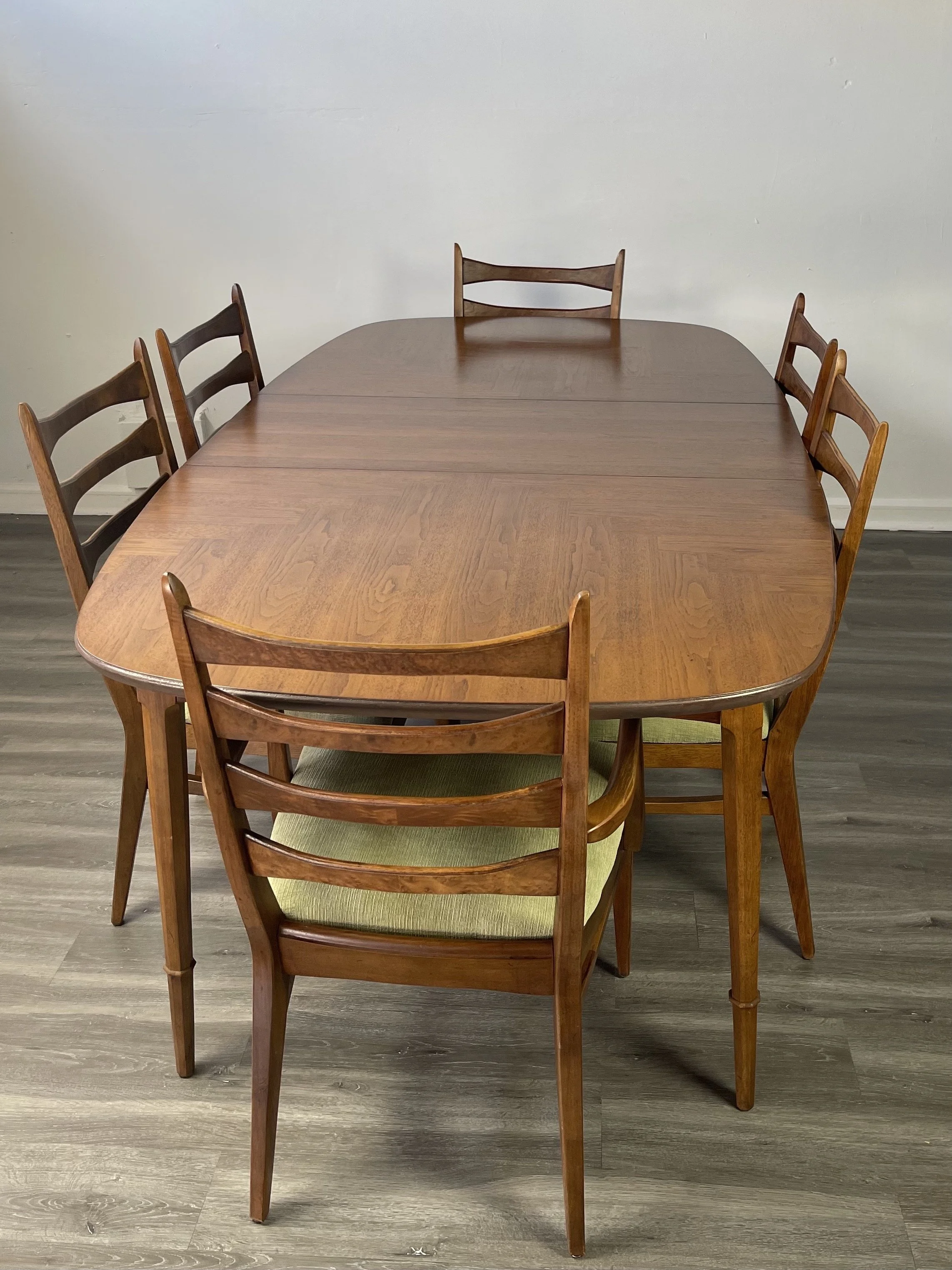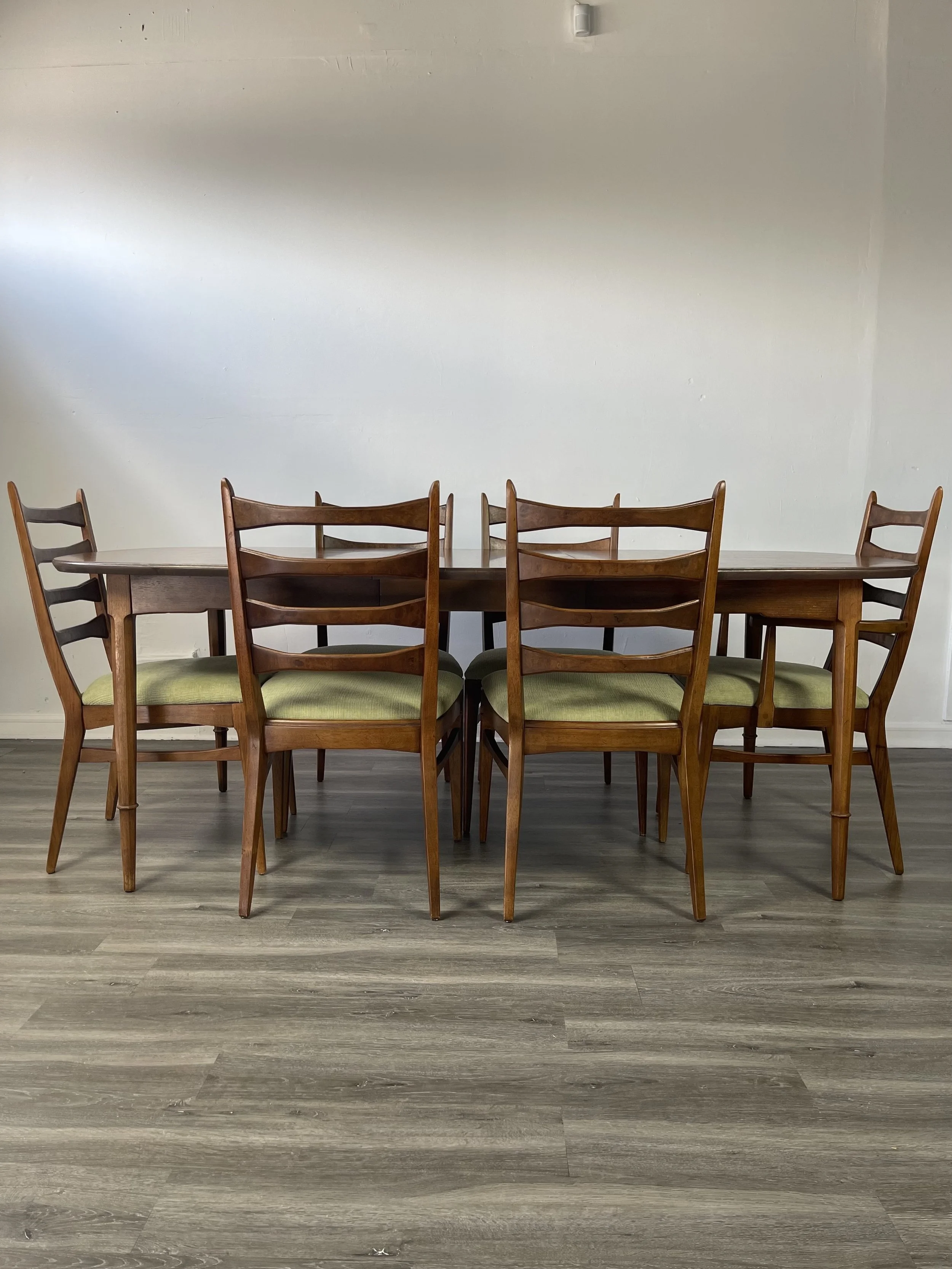 Image 1 of 11 Image 2 of 11 Image 3 of 11 Image 4 of 11 Image 5 of 11 Image 6 of 11 Image 7 of 11 Image 8 of 11 Image 9 of 11 Image 10 of 11 Image 11 of 11 Mid Century Modern walnut dining table and six chairs $0.00 Add To Cart Added!