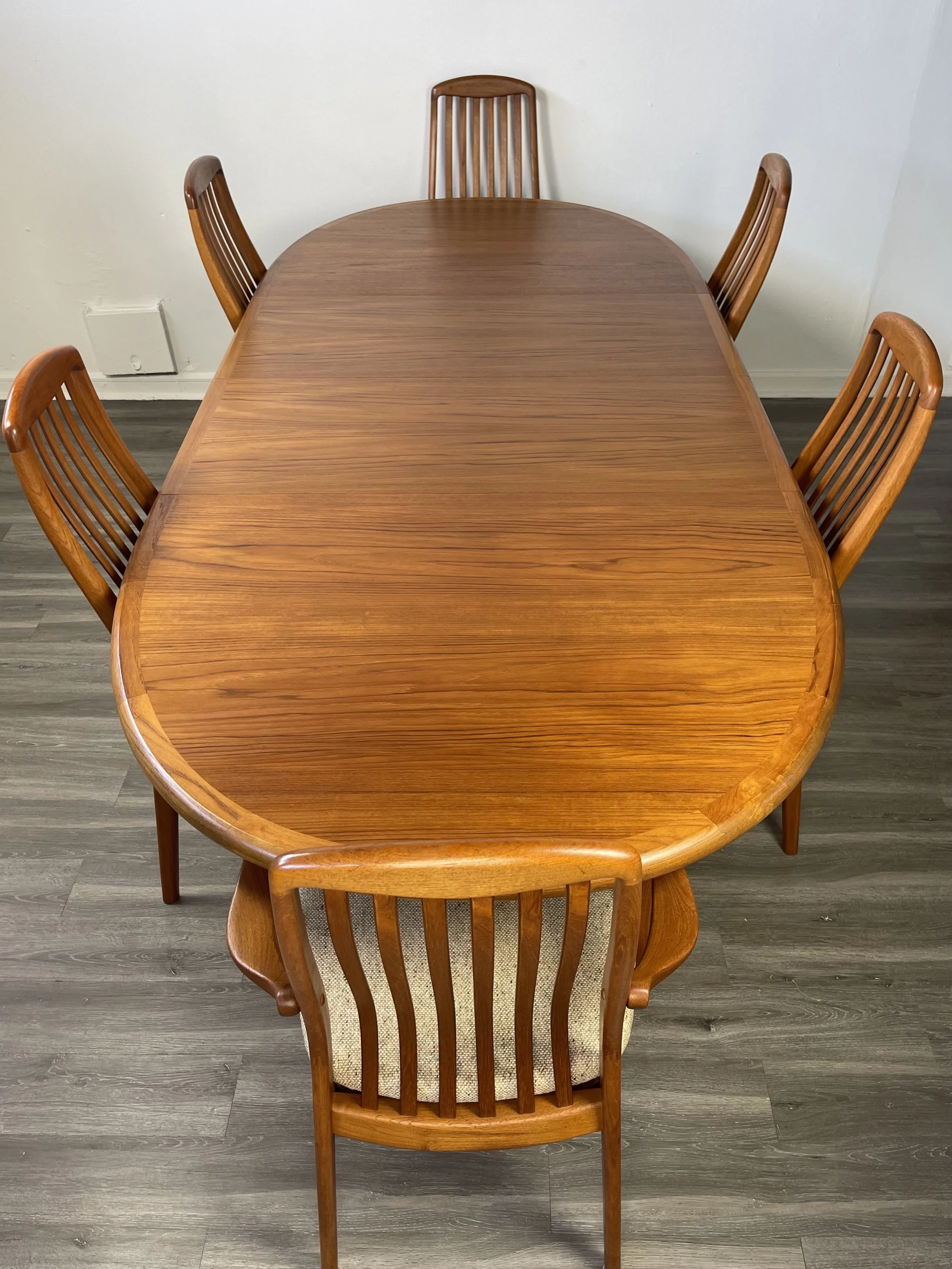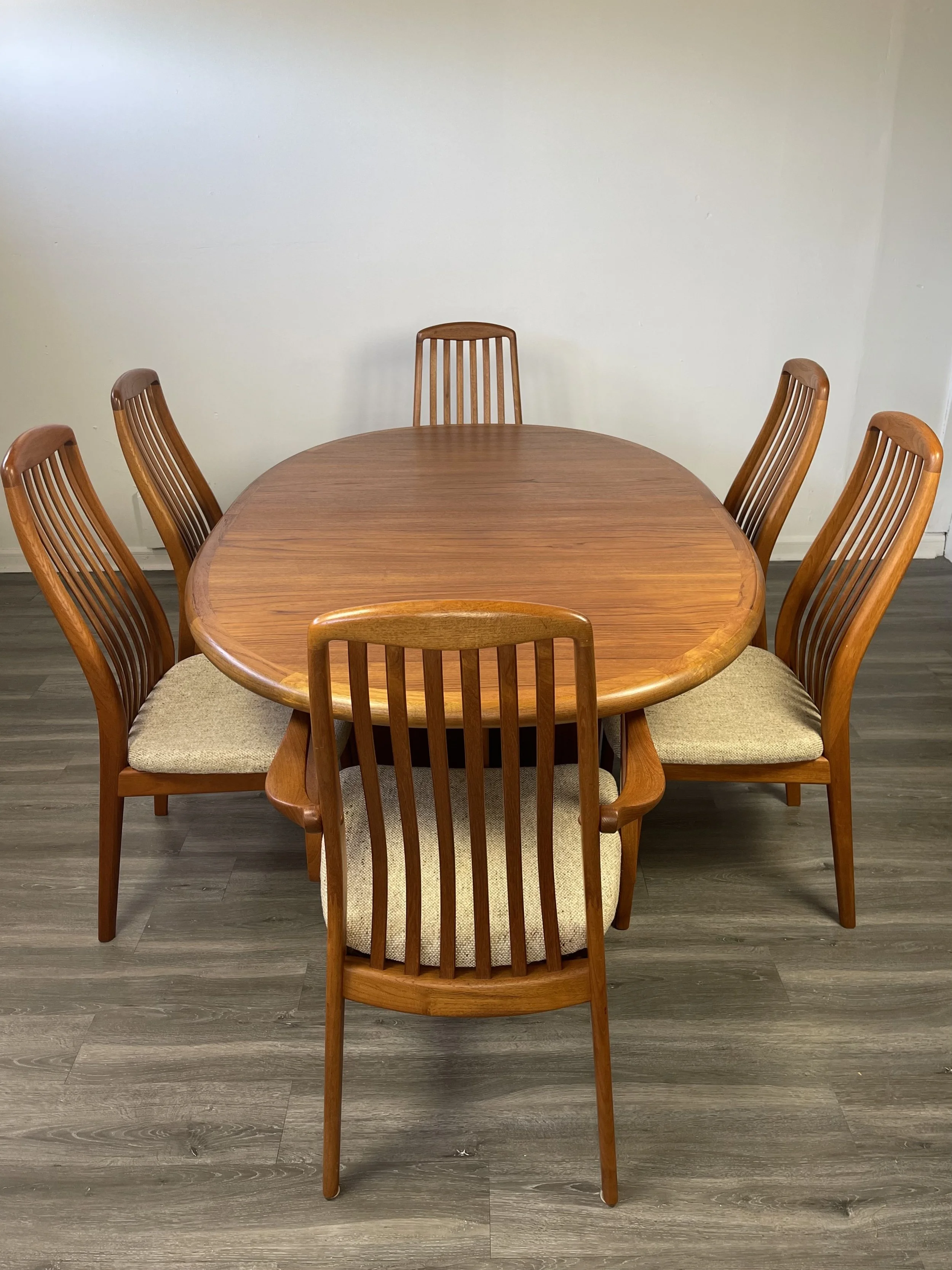 Image 1 of 13 Image 2 of 13 Image 3 of 13 Image 4 of 13 Image 5 of 13 Image 6 of 13 Image 7 of 13 Image 8 of 13 Image 9 of 13 Image 10 of 13 Image 11 of 13 Image 12 of 13 Image 13 of 13 Mid Century Modern dining set with six chairs $0.00 Add To Cart Added!