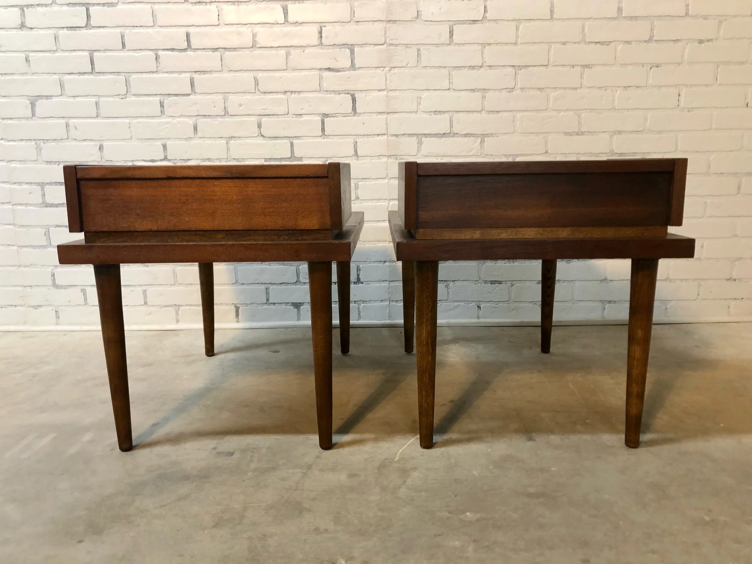 Image 1 of 8 Image 2 of 8 Image 3 of 8 Image 4 of 8 Image 5 of 8 Image 6 of 8 Image 7 of 8 Image 8 of 8 Pair of restored American of Martinsville 'Accord' walnut end tables $0.00 Dimensions: W: 20” x D: 28” x H: 21.5” Add To Cart Added! Dimensions: W: 20” x D: 28” x H: 21.5”
